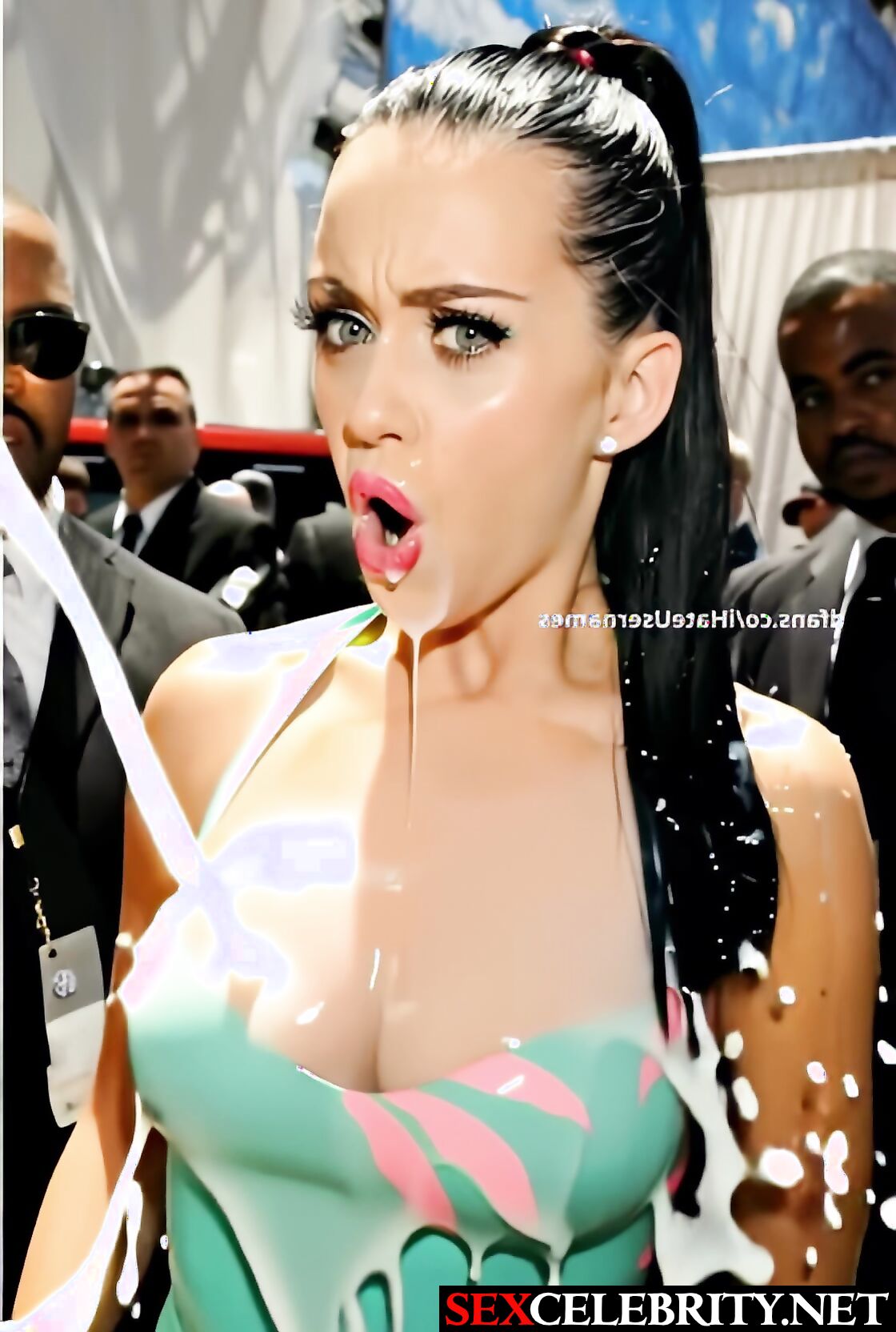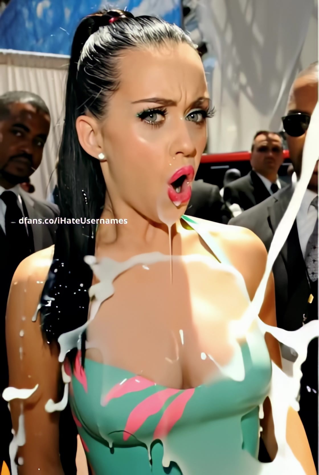 Blacks watching as she is doused with milk, Katy Perry real fake